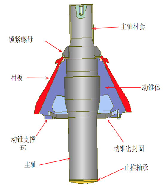動(dòng)錐整體為合金鋼鑄造,通過(guò)調(diào)質(zhì)(淬火+高溫回火)處理后,具有高強(qiáng)度、韌性及耐磨性、抗疲勞強(qiáng)度良好,硬度可達(dá)207HBS,抗拉強(qiáng)度σb ≥785MPa;